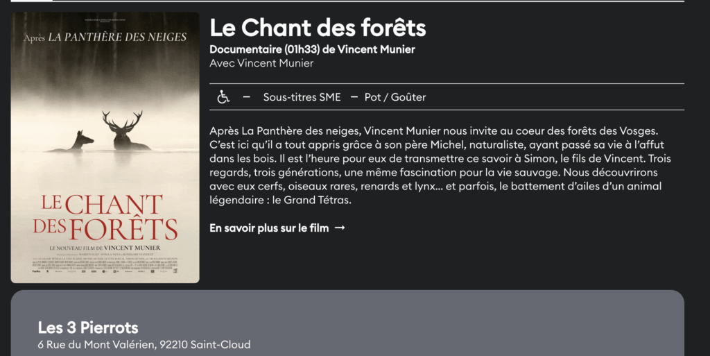 Film à 16h00 : Le chant des forêts